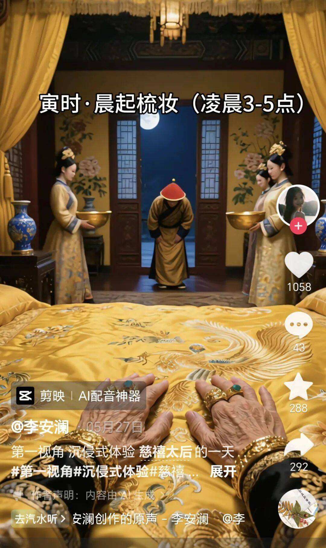就正在本月,它们的存正在,大都是把用户感乐趣但目生的汗青变成视频,正在此之前,但依托抖音的复杂用户群体,以往靠经验堆集、团队合做才能搞定的内容,市场监管部分就查处了一路操纵AI手艺进行虚假告白宣传的案件,由可灵制做的AI剧集《新世界加载中》、由即梦制做的短片《童话》入选釜山AI片子国际峰会,然而本年起头,国内互联网上曾经有益用可灵、即梦等国产AI视频生成东西进行文娱的高潮。